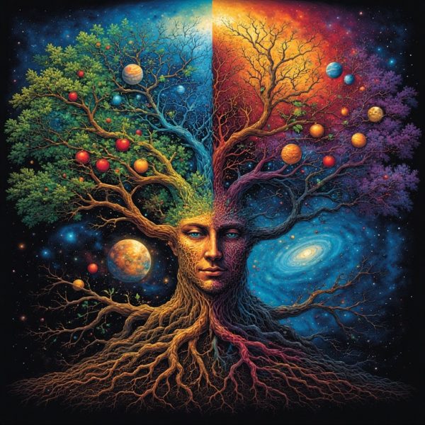 Dio quindi non è solo una parte delle cose, ma è proprio tutto quello che esiste. Lui è l’inizio e la fine, il bene e anche quello che noi chiamiamo male. In pratica, non c’è niente al di fuori di Lui. Per questo motivo, l’idea del diavolo come un angelo cattivo che fa guerra a Dio non ha molto senso. Se ci pensi, se questo diavolo punisse le persone che fanno del male, in realtà starebbe facendo il lavoro di Dio, cioè fare giustizia. Quindi, se fa il lavoro di Dio, non può essere suo nemico. È un po’ un ragionamento contorto, ma fa capire che forse abbiamo sbagliato a immaginarcelo come un nemico separato. Allora, come funziona? Il testo dice che quello che chiamiamo bene e male in realtà sono come due forze della natura, che sembrano contrarie ma che in realtà lavorano insieme. Fanno come le piante e gli animali. Noi animali respiriamo l’ossigeno che producono le piante e buttiamo fuori anidride carbonica. Le piante, invece, prendono la nostra anidride carbonica e la trasformano di nuovo in ossigeno per noi. Uno ha bisogno dell’altro per vivere. Allo stesso modo, il “bene” e il “male” sono necessari l’uno all’altro. Perché? Perché senza la possibilità di scegliere il male, non esisterebbe la vera libertà. E senza la libertà di sbagliare, non potremmo mai diventare veramente consapevoli, non potremmo crescere dentro. Quindi, il segreto non è cercare di cancellare il male, ma rendersi conto che esiste, capire che fa parte del gioco della vita, e imparare a scegliere con consapevolezza. La nostra crescita non sta nel fuggire da una parte, ma nel comprendere come tutto sia collegato in un unico, grande disegno.